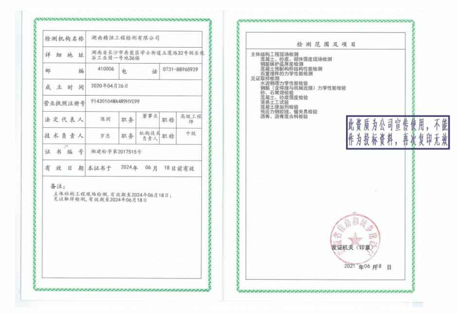 湖南南昌俊才科研实验服务有限公司为深圳南昌俊才科研实验服务有限公司的子公司,成立于2020年4月26日,注册资金4500万,位于岳麓区学士街道联东U谷园区内36栋,办公试验场所面积6300平方米,拟承接开展建设、交通、水利、电力、化工、石油等领域项目的材料及施工质量检验和检测。是一家独立的第三方专业检验检测机构。